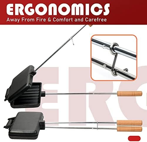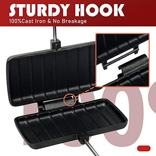 Large & Versatile: Cast Iron Pie Iron Have Weight but Heat Distribution is Superb; Double the Size (4.33″x8.26″) & the Square Pie Iron Head Is Great for Large Food and More.