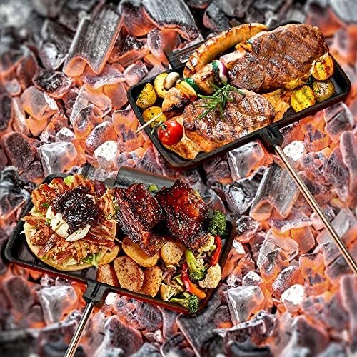 Double Pie Irons for Camping Cast Iron, Portable Mountain Campfire Pie Maker, Ca…