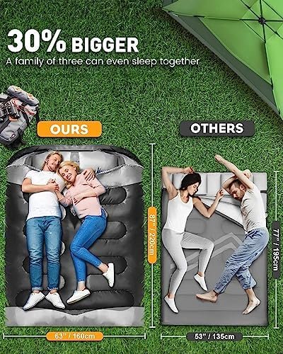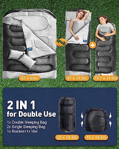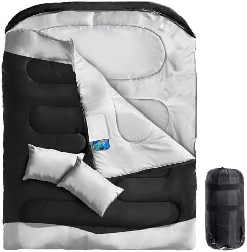 Double Sleeping Bag, XL Queen Size Two Person Sleeping Bag with Pillow, Youth Sl…