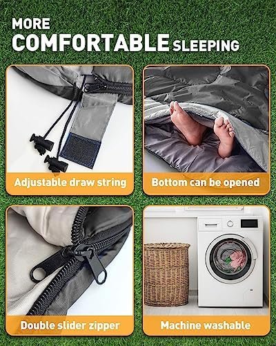 Easy to Clean and Comfortable: Made with new composite thermal material, this lightweight and sturdy sleeping bag is both comfortable and durable and conforms to the 3D ergonomic design. The adult sleeping bag can be easily machine-washed in case of heavy soiling, ensuring easy maintenance and long-lasting use.