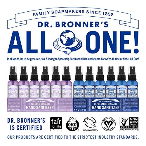 Dr. Bronner’s – Organic Hand Sanitizer Spray (Peppermint, 2 ounce, 6-Pack) – Sim…