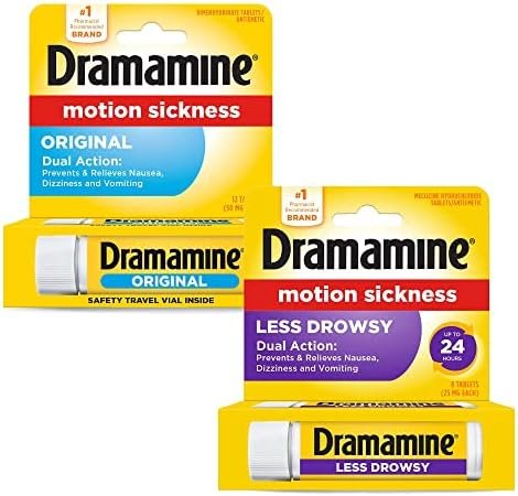 Dramamine Motion Sickness Variety Pack (1- Original Formula 12 Count, 1- All Day…