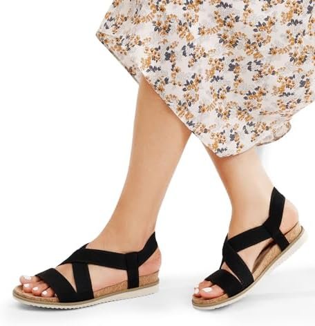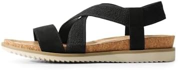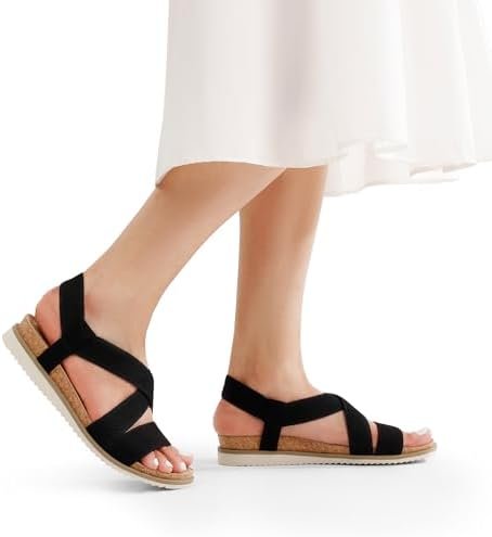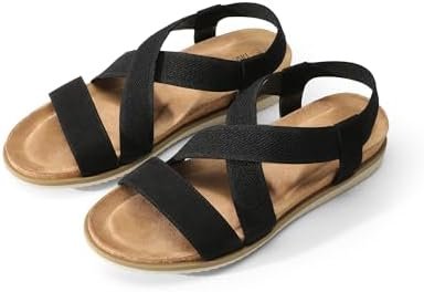 DREAM PAIRS Women’s Comfortable Low Wedge Sandals, Open Toe Slip On Strappy Flat…