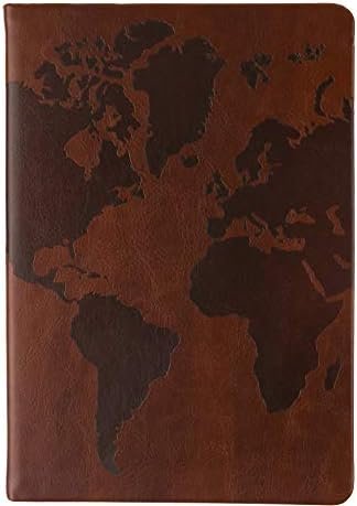 The Journal features a world map embossing on a brown leatherette cover