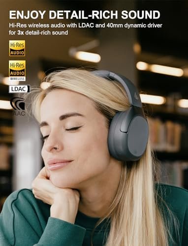Hear Every Detail – 40mm dynamic driver with LDAC codec for Hi-Res Wireless audio, delivering 3X more detail than standard Bluetooth transmission for punchy bass and crisp treble