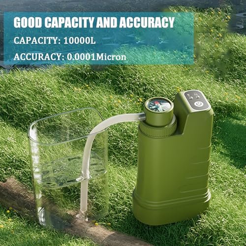 Multiple uses: Just press Water Purifier Survival of button to clean water in an outdoor environment; when fetching water outdoors, your hands are free and you can pack luggage, set up a tent, cook, etc. Emergency lights make it easy to get water Go outside at night to drink water. Equipped with a compass to point you in the right direction
