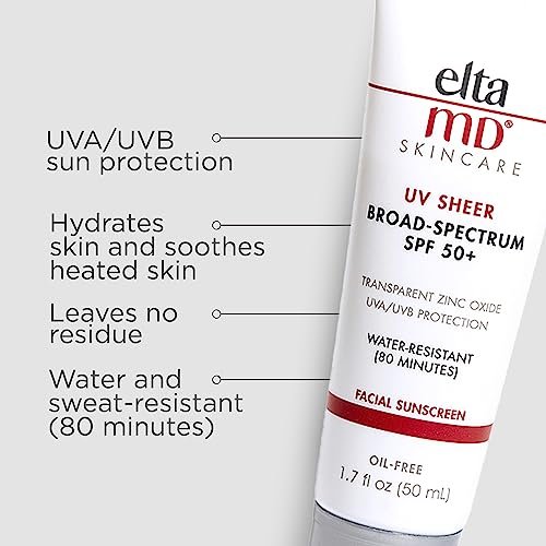 EltaMD UV Sheer Face Sunscreen, SPF 50+ No White Cast Sunscreen for Face and Bod…