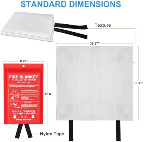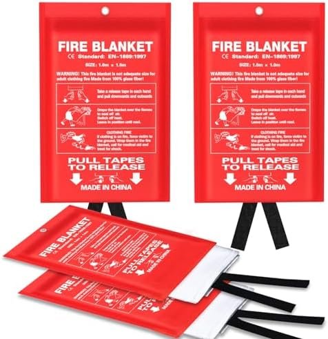 Emergency Fire Blanket for Kitchen and Home, 4 Pack 39.37”x39.37” Fiberglass Fir…