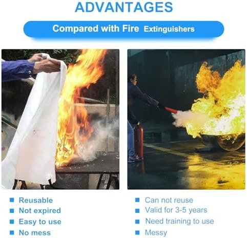 【WIDELY APPLICATION】 Effective on a liquid or grease fire. It also works in different types of fires. They can also be used as heat sinks or heat shields. Unlike conventional fire extinguishers, fire blankets never expire.
