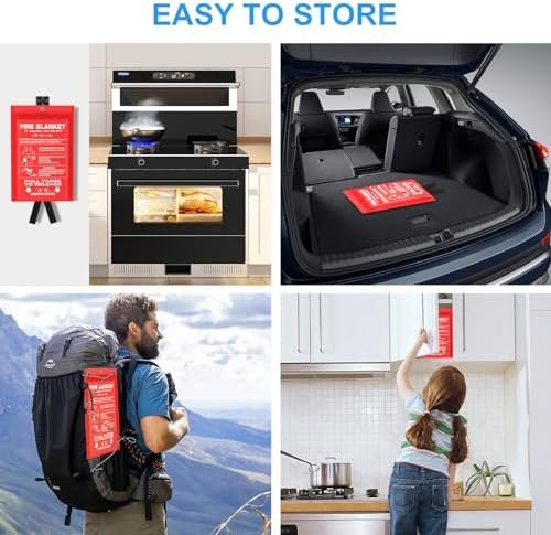 【EASY TO USE AND STORE】 Simply deploy the blanket by pulling down the tape, cover the fire source until it is extinguished. It has a hole slot so it can also be easily hung on the wall. You can keep a fire blanket in the kitchen, backyard, vehicle, or take it camping.