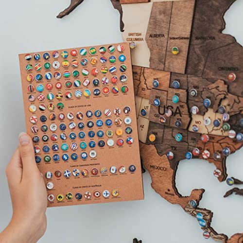 ENJOY THE WOOD Push Pins For Wood World Map Country Flags Addons for World Map T…