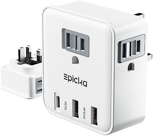 EPICKA UK Ireland Travel Adapter, International Power Plug Adapter with 3 AC Out…