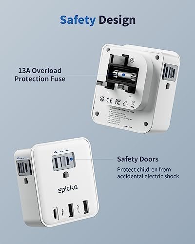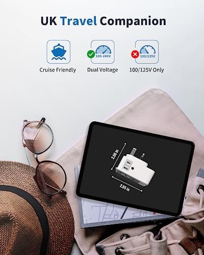 PORTABLE AND SAFE – This UK power adapter is ideal for travelers, overseas business, work, and students. It does not have surge protection and can be conveniently used on a cruise ship as well. Built-in 13A fuse, safety doors, RoHS, CE, and FCC certifications, and our 2-year limited warranty provide extra peace of mind.