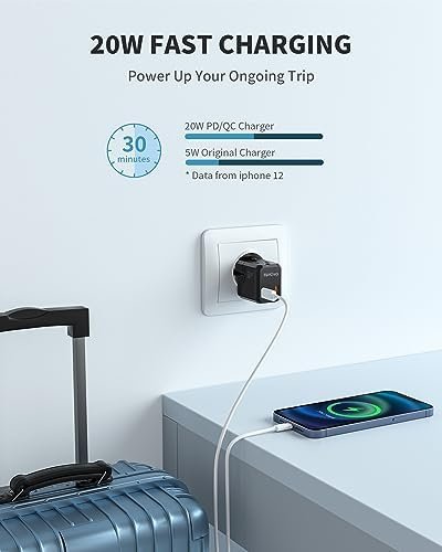 20W FAST CHARGER AND MORE – This versatile adapter is equipped with a USB-C, a USB-A port and an AC outlet to meet your different demands. Both of two USB ports support 20W PD/QC fast charging, ideal for charging iPhone, Samsung and other Android phones, smart watch, tablet, power bank, camera, handheld game console, and everything else that is charged through a USB port. The AC outlet is suitable for other device like a latop. Please note that it does NOT convert voltage (US/Canada voltage is 110-120V and most other countries are 220-230V), you must make sure that the AC-powered device you intend to use abroad supports dual voltage (with input spec reads “100-240V, 50/60Hz” on your device).