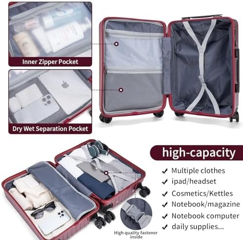 ETidy Carry On Luggage,PC+ABS Hardside With Spinner Wheels, TSA Lock, Cup Holder…