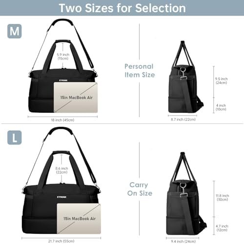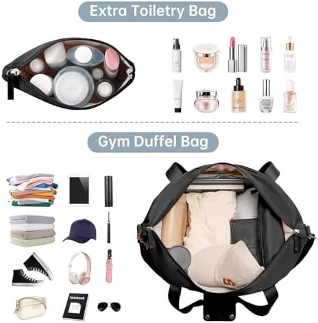 Dry Wet Separate Duffel Bag:This duffle bag for women offers a spacious main compartment to store your clothes and items. A zippered waterproof PVC lined pocket for wet clothes or towels and swimsuits. In addition, this travel duffel bag also gives an extra small makeup bag for easy storage