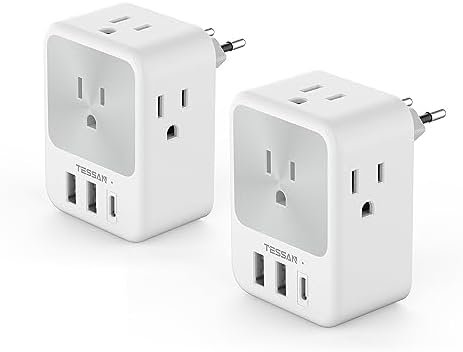 European Travel Plug Adapter 2 Packs, TESSAN US to Europe Power Adaptor with 4 O…