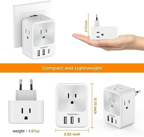 European Travel Plug Adapter Type C Plug Adapter with USB Ports