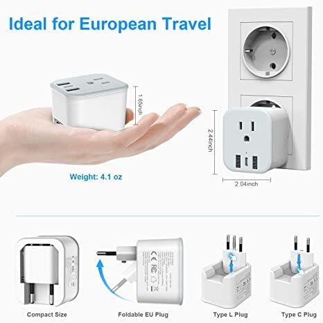 This Foldable European Travel Plug Adapter is Perfect Solution for the Charging Problem of Your Wonderful Trip. Allows You to Share USB/USB-C Ports with Your Family or Friends, Built-in Smart IC Chip with Intelligent, Safe and Speedy. Make your trip more enjoyable