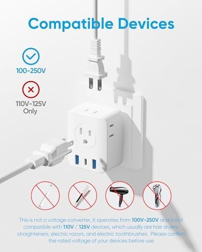 【Not a Voltage Converter】 Not compatible with US-110V-only devices. Compatible with 110&220V dual voltage devices.