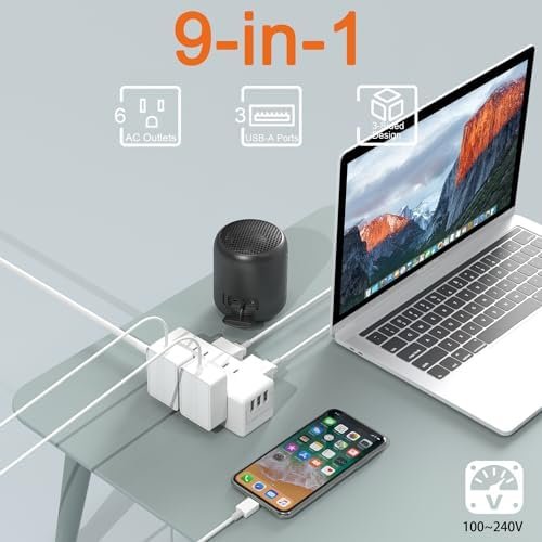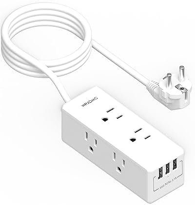 【9 IN 1 European Plug Adapter with USB】- This adapters for European outlets can turn 1 Europe Type E/F socket into 6 American AC outlets and 3 USB ports, charge 9 devices at a time; 3 USB ports can charge up to 3.1A, compatible with cellphone, tablet, camera ect; No need to carry extra adapter and power strip for your traveling, this Type E/F plug adapter can save your suitcase space.