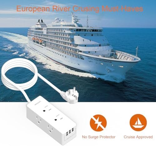 【Compact Size/Cruise Ship Must Haves】- This small power strip is designed with No surge protection, making it fully cruise ship approved.Small size of 4.8*1.8*1.8 IN can easy fit into luggage or briefcases,compact and lightweight, which helps to save your precious luggage space.This outlet extension cord is perfect for cruise ship,europe travel, etc(Tips: Does NOT work in ITALY, Israel, UK)
