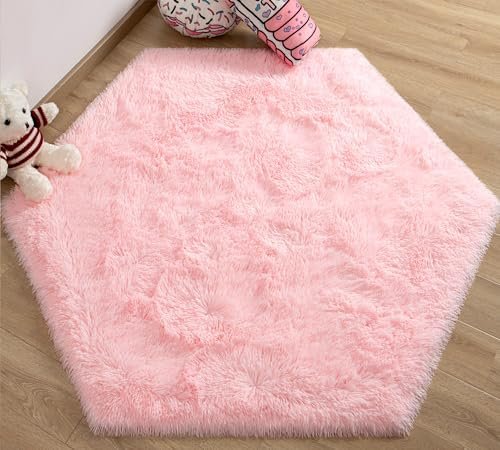 EVOIONOS Pink Hexagon Rug for Princess Tent, Fluffy Area Rug for Kids Room, 4×4….