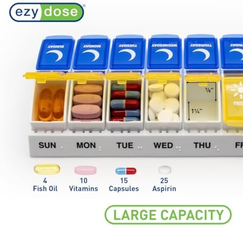 Ezy Dose Weekly (7-Day) AM/PM Pill Organizer, Vitamin and Medicine Box, Large Po…