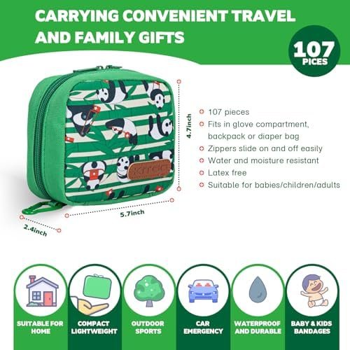 First Aid Kit for Kids – 107 Pieces, Small Travel First Aid Kit for Car, Home, O…