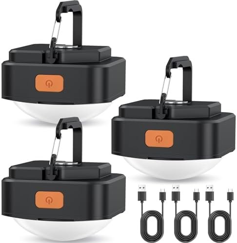 FLY2SKY 3 Pcs Black LED Camping Lights Tent Light Portable Rechargeable Survival…