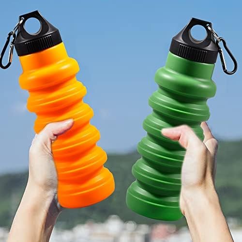 fMBB Foldable Silicone Water Bottle 550ml with Screw Lid Leakproof Travel Mug wi…