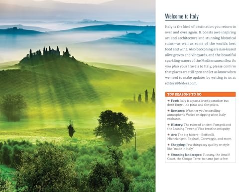 Whether you want to visit the Colosseum in Rome, go designer shopping in Milan, or hike the Cinque Terre, the local Fodor’s travel experts in Italy are here to help! Fodor’s Essential Italy 2024 guidebook is packed with maps, carefully curated recommendations, and everything else you need to simplify your trip-planning process and make the most of your time. This new edition has an easy-to-read layout, fresh information, and beautiful color photos.