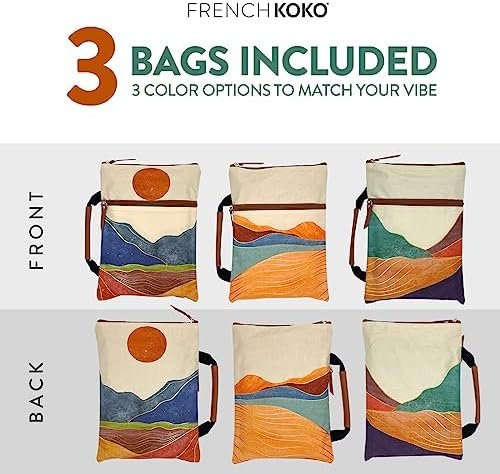 French KOKO 3-Piece Waterproof Book Carrier, Book Protector Pouch with Zipper Po…