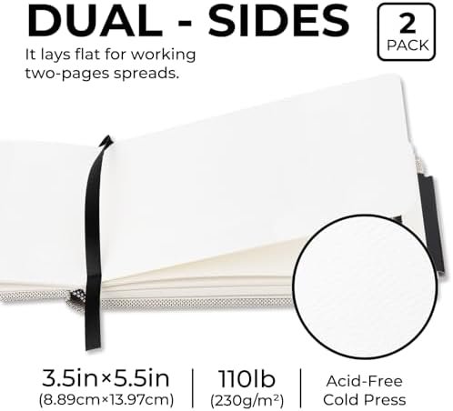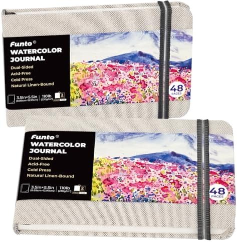 Funto Watercolor Journal, 3.5×5.5″, 2 Pack, 48 Pages Each, Cold-Pressed with Inn…