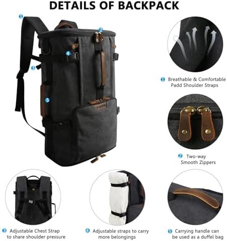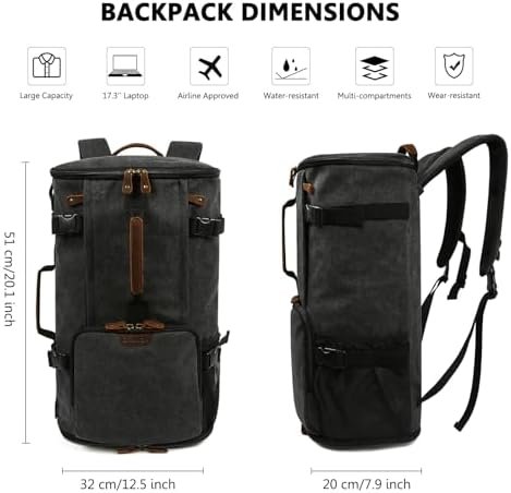 ★MULTI-FUNCTIONAL. This canvas backpack can be used as carry on travel backpack, work bag, daypack, overnight bag, weekender bag, travel bag. Backpack for travel, hiking, outdoor, and camping.