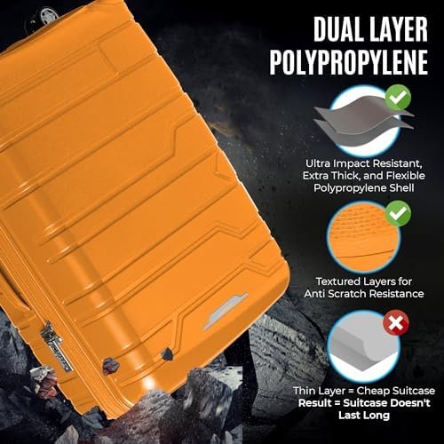 Unbreakable Hardshell luggage sets: Made with a multiple-layered polypropylene shell for incredible durability, ensuring your luggage withstands the toughest travel conditions.