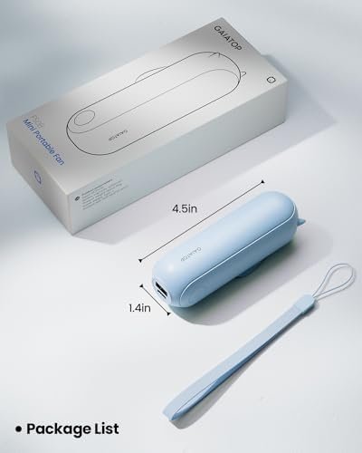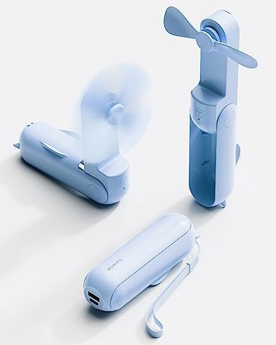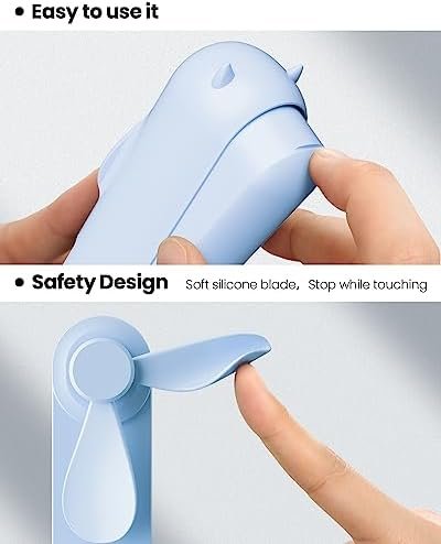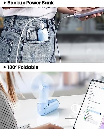 Foldable Handheld and Desk Fan: The mini portable fan is super compact, lightweight and portable; Folding size: 4.47*1.41*1.45in, Weigh: 4.2 oz; It’s a handheld fan when it is unfolded 180°, and a desktop fan when it is unfolded 90 or 270°