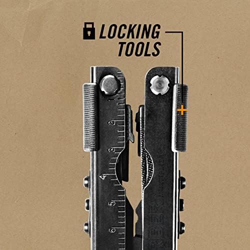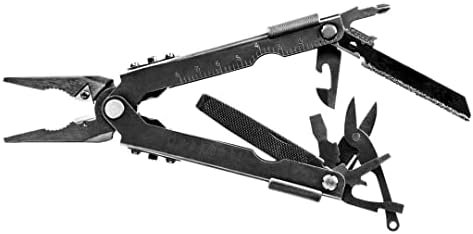 14-IN-1 MULTI-TOOL: Features needle nose pliers, small, medium, and large flathead screwdrivers, Philips screwdriver, file, removable saw, replaceable wire cutters, can opener, bottle opener, scissors, ruler, and a ballistic nylon sheath