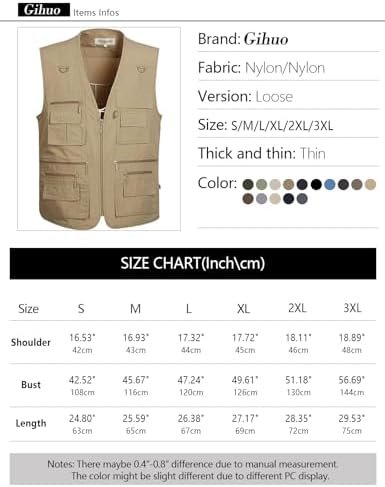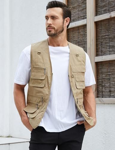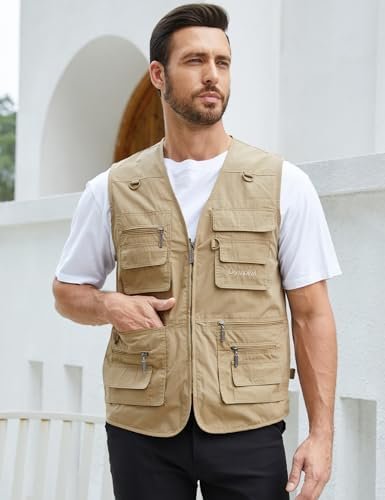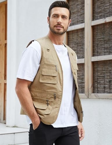 Gihuo Men’s Fishing Vest Utility Safari Travel Vest with Pockets Outdoor Work Ph…
