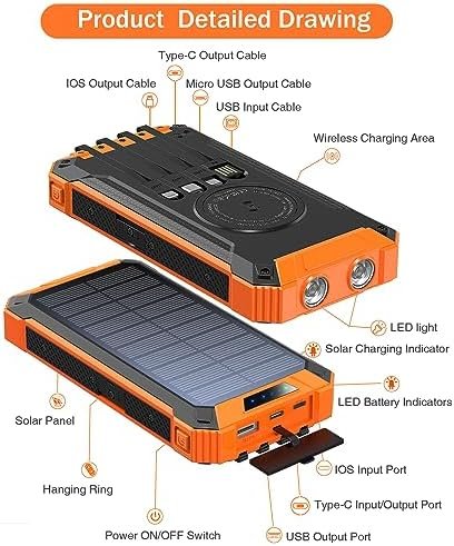 [Power 6 Devices at Once] This solar charger is also equipped with 4 ports (iOS input, USB A output, USB C input/output), providing 5V/3A high-speed charging to save time. Along with 4 charging cables and wireless charging, it supports charging 6 devices simultaneously. Keep all your devices alive. Sharing with families and friends is perfect.