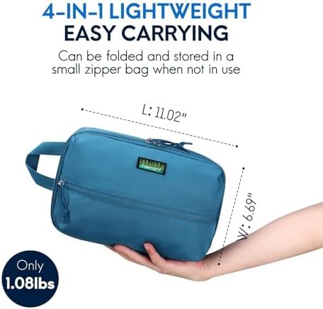 Luggage Packing Organizers in 4 Sizes: Haimont 4-set compression packing cubes in different sizes and colors. Different-sized travel essentials set organize clothes, dirty laundry, bras, underwear, shoes, makeup, towels, toiletries and electronic accessories. 1 drawstring pocket size: 17.7″ L x 12.6″ W, 1 zippered pocket size 11.02″ L x 6.69″ W x 3.15″ H. 1 small zipper bag, expanded size 17.7″ L x 12.6″ W x 4.72″ H. 1 large zipper bag, expanded size 13.78″ L x 9.84″ W x10″ H
