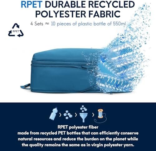 Durable Polyester Fabric: Haimont packing cubes set is made from 70% recycled materials, equivalent to 10 pieces of recycled bottles. Recyclable polyester packing organizer bags are durable and lightweight, saving raw materials and reducing the harm of waste