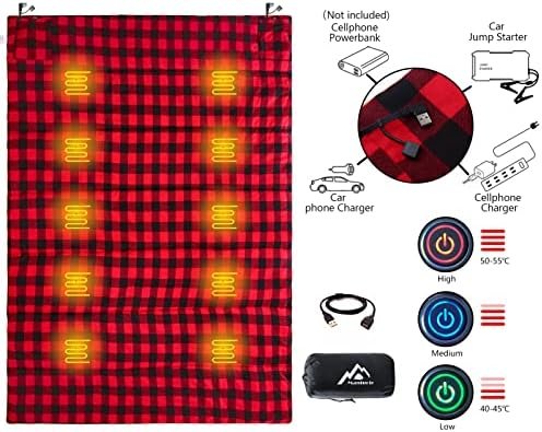 Heated Sleeping Bag pad, Heated Sleeping Bag liner, 5 Heating Zones, Multi USB p…