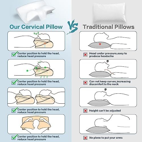 Hexus Cervical Pillow for Neck Pain Relief, Ergonomic Hollow Design, Odorless Me…