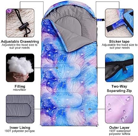 Multipurpose versatility –It’s a perfect sleeping bag for Outdoor camping trips, boy scouts or mountain hiking, office nap, sleepover, picnic, also works as camping comforter.
