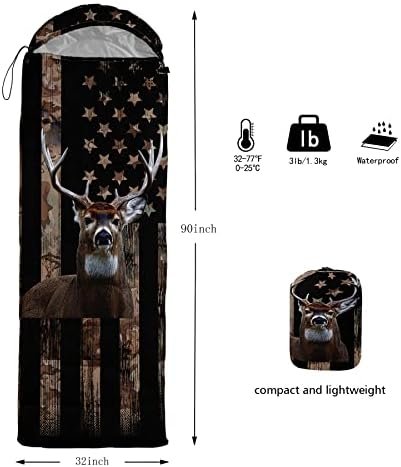 【Fashion Design】This black sleeping bag features a stylish deer pattern that adds a touch of nature to your camping or hiking hunting fishing experience.The bag comes with a compression sack for easy storage and transport,so you can take it with you wherever you go.