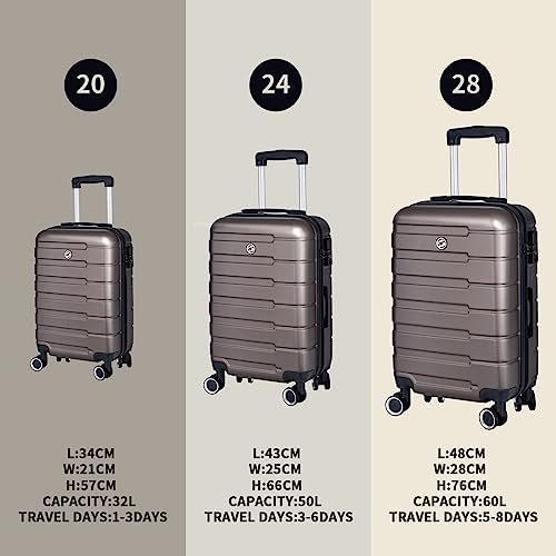 【3 Pieces Spinner Luggage Set】: Hardside Spinner Luggage 20 Inch (Meets Carry-On Size Restrictions for Those Traveling Domestically and Looking to Stay Light), 24 Inch/28 Inch (Maximize Your Packing Power and the Ideal Checked Bags for Longer Trips), Can Be Stored One into Another. Perfect for Work Travel, Vacations, or as International Carry-On!