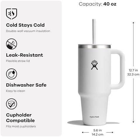 THE BEST TUMBLER: The insulated Hydro Flask 40 oz Travel Tumbler is here to hydrate more and refill less. The insulation keeps drinks cold and the durable handle takes it to the next level. The perfect size stainless steel tumbler bottle can go anywhere, even fitting most cupholders. Cold stays cold, and the flexible straw is easy to sip any which way.