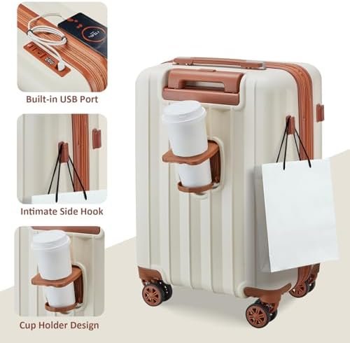 Free Your Hands – The newly designed cup holder is perfectly integrated into the structure of the spinner luggage, providing you with a convenient option to put your cup on the go without worrying about it tipping or slipping
