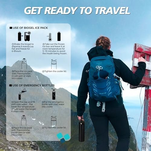 2 COOLING METHODS: 1) The blue ice pack with biogel provides 48 hours of cooling time; 2) The white ice water bottle adds an additional 12 hours of cooling time when filled with ice water; So you can travel without worrying about your medication expiring